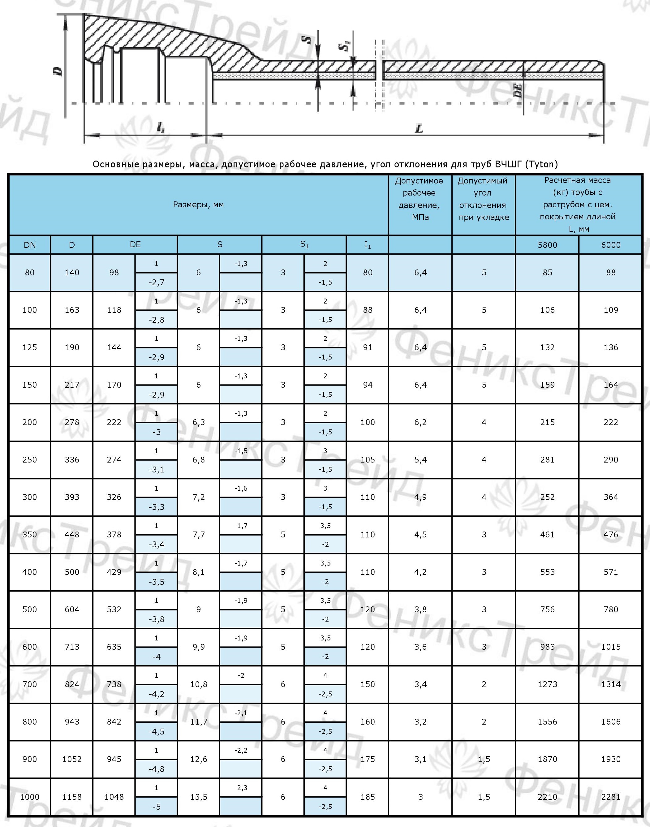 | Полное наименование | Труба чугунная из высокопрочного чугуна с добавлением шаровидного графита |