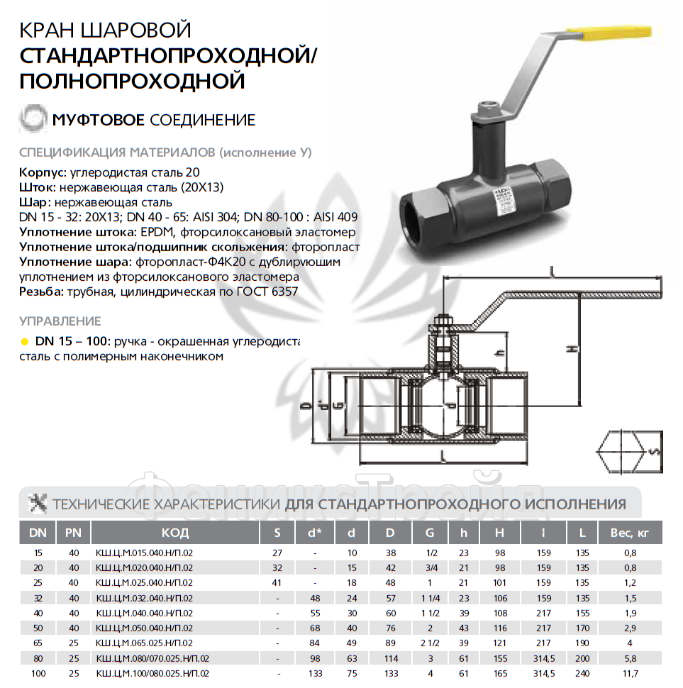 | Полное наименование | Кран шаровой цельносварной муфтовый стандартнопрохолдной LD |