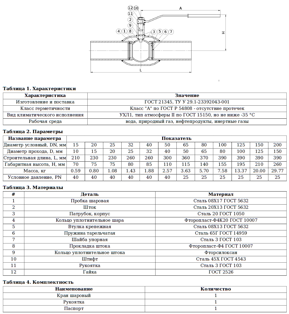 | Класс герметичности: | Класс "А" по ГОСТ Р 54808 - отсутствие протечек |