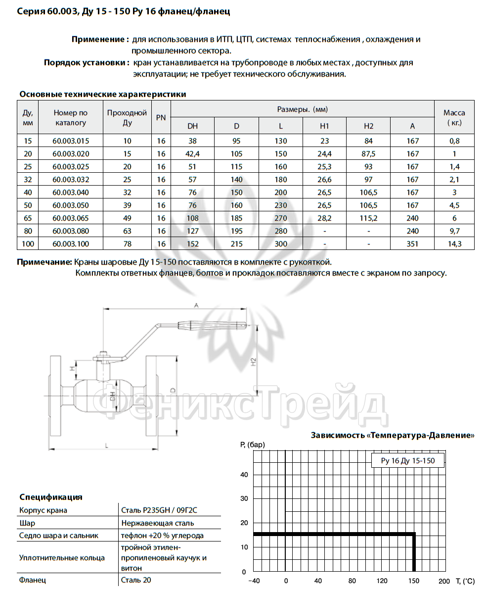 •   Полное наименование Кран шаровый фланцевый Broen Ballomax серии 60.003 11с10фт