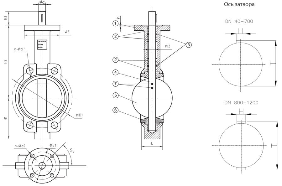 | Полное наименование | Затвор поворотный дисковый DENDOR тип 017W межфланцевый, чугуный с нержавеющим диском |