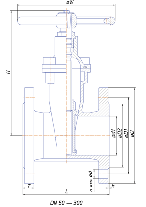 | Задвижка 30ч39р Ду 300 | 270 | 460 | 410 | 370 | 12 | 26 | 4 | 28 | 685 |