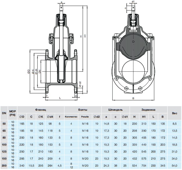 | Давление условное | Ру10, Ру16 |